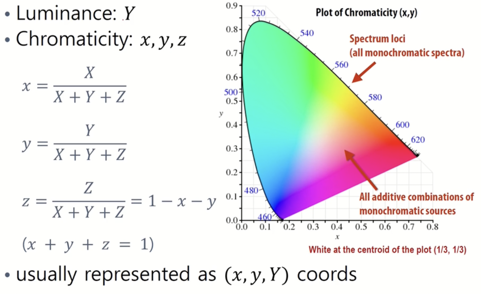 - 빛의 밝기를 나타내는 Luminance Y와 chromaticity x,y,z를 분리한다.