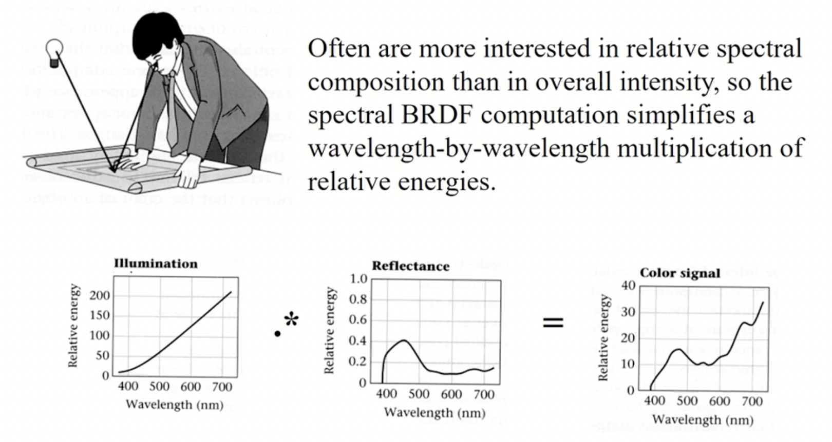 - 그럼 reflectance에 따라서 파장별 iradiance를 곱해서 color가 도출된다.