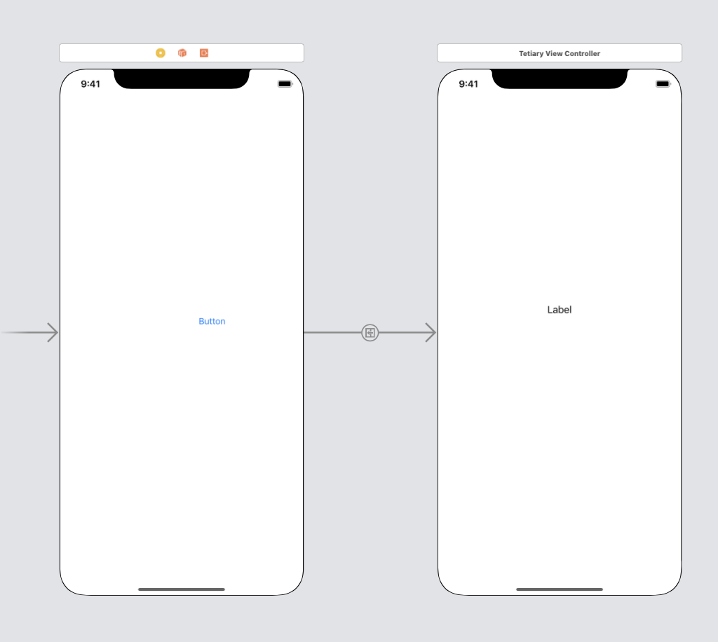 이 예제 프로젝트에서는 MainViewController에서 TetiaryViewController로 넘어가는 세그를 확인할 수 있다.
