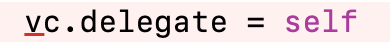 이제 delegation의 중요한 부분이다!! 클래스에 프로퍼티와 몇가지의 코드를 추가해서 functionality를 delegate 하게 해줘야한다, secondary VC가 그랬던 것 처럼!