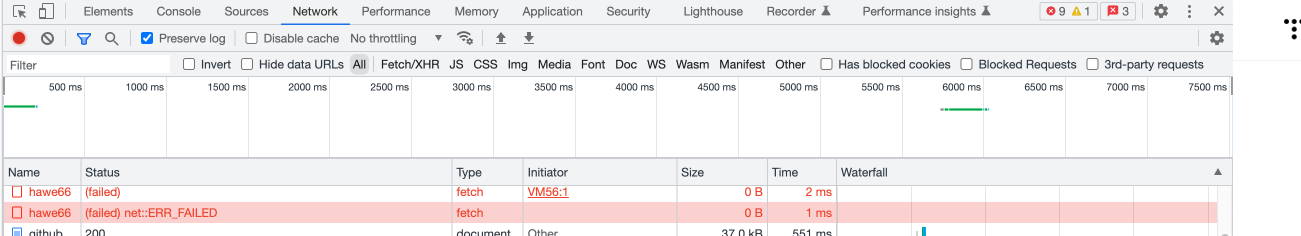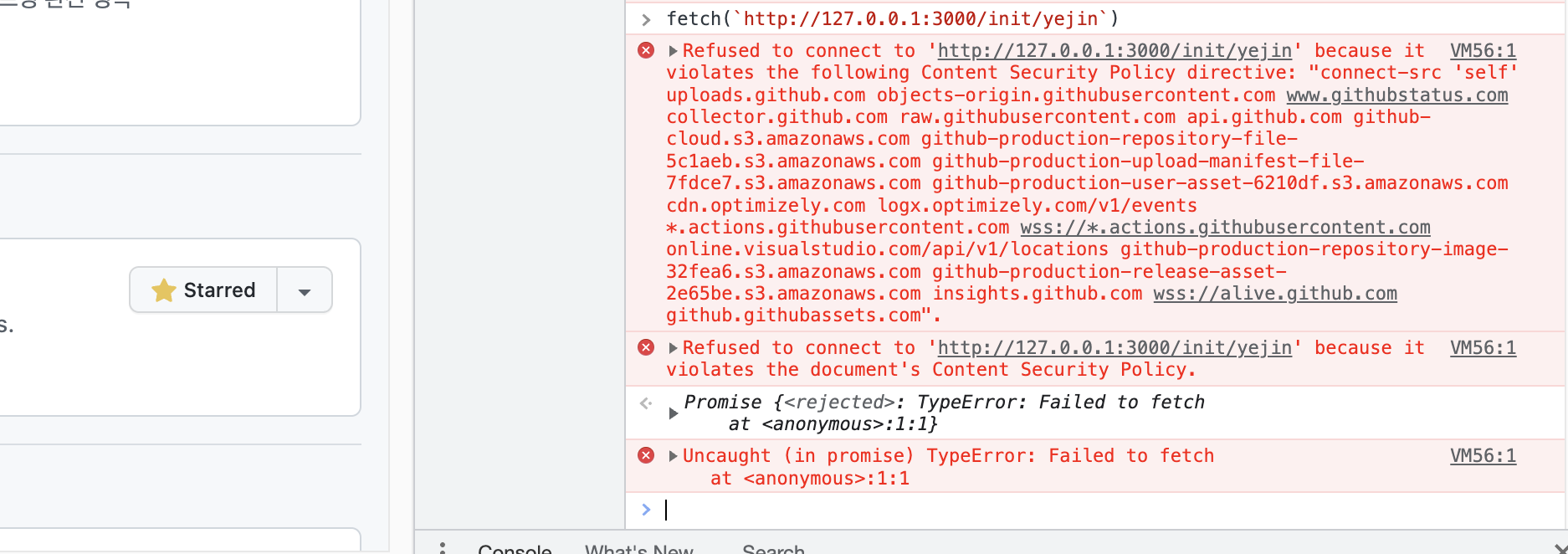 혹시나 해서 github.com을 실행한 크롬 콘솔에서 fetch를 콜 해봤다.