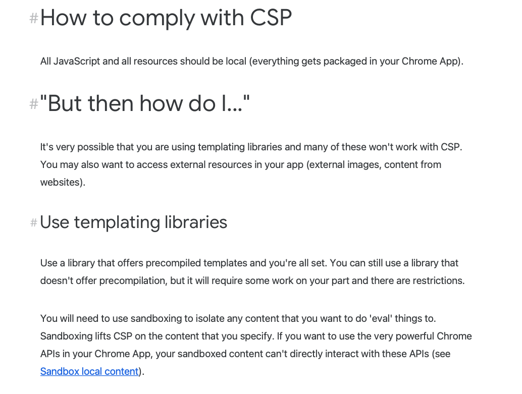 https://developer.chrome.com/docs/extensions/mv3/sandboxingEval/