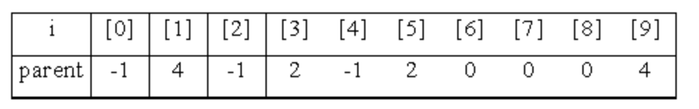 for (;parent[i]>=0; i=parent[i]) ;