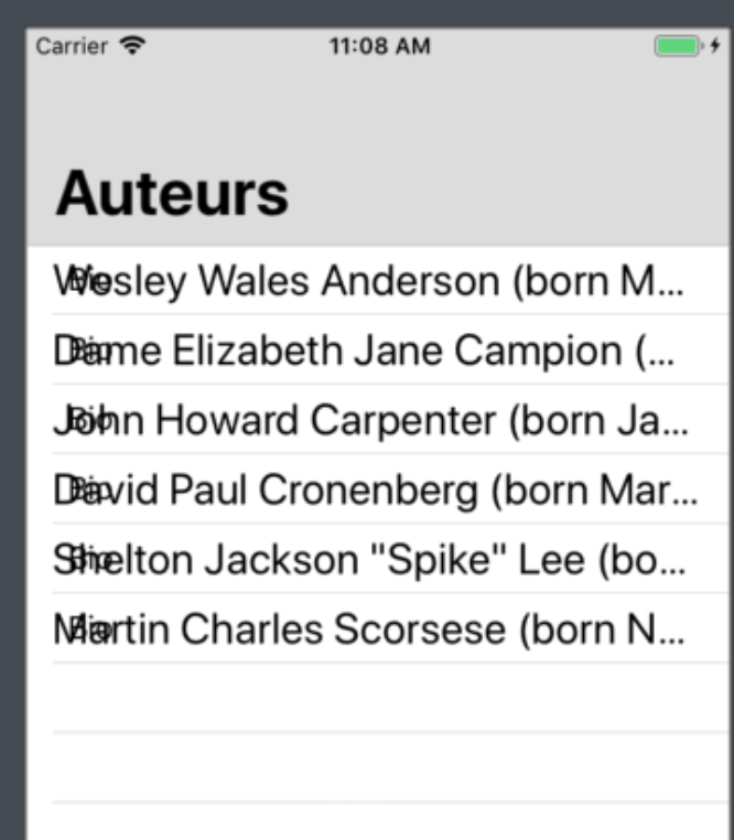 let cell = tableView.dequeueReusableCell( withIdentifier: "Cell", for: indexPath) as! AuteurTableViewCell