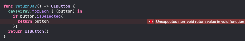 return daysArray.filter({ $0.isSelected}).first ?? UIButton()
