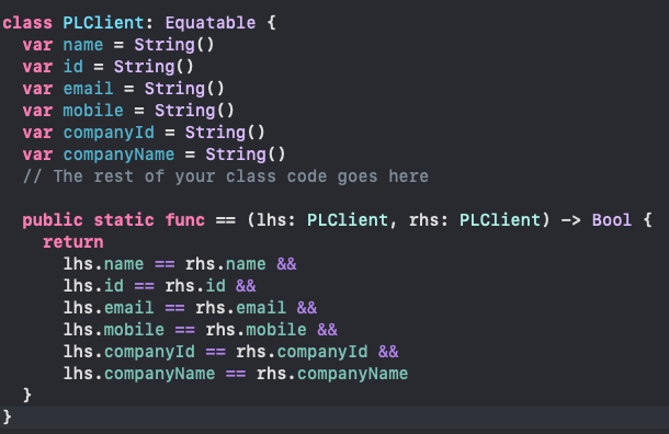 class도 똑같이 Equatable 프로토콜을 써주면 된다 :D