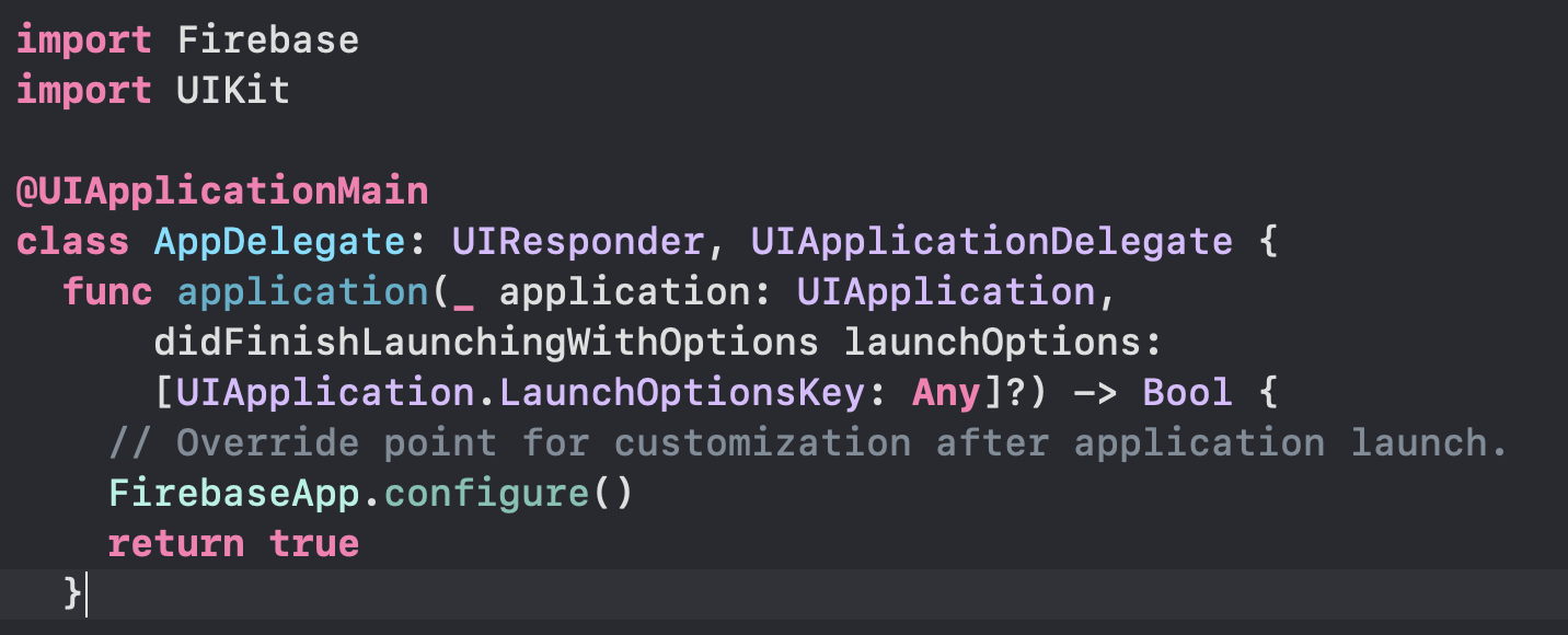 swiftUI로 넘어오면서, AppDelegate에 있던 window가 SceneDelegate로 넘어갔다. 신경쓰지 않고, AppDelegate의 didFinishLaunchingWithOptions에 Firebase.configure()코드를 추가해주면 된다.
