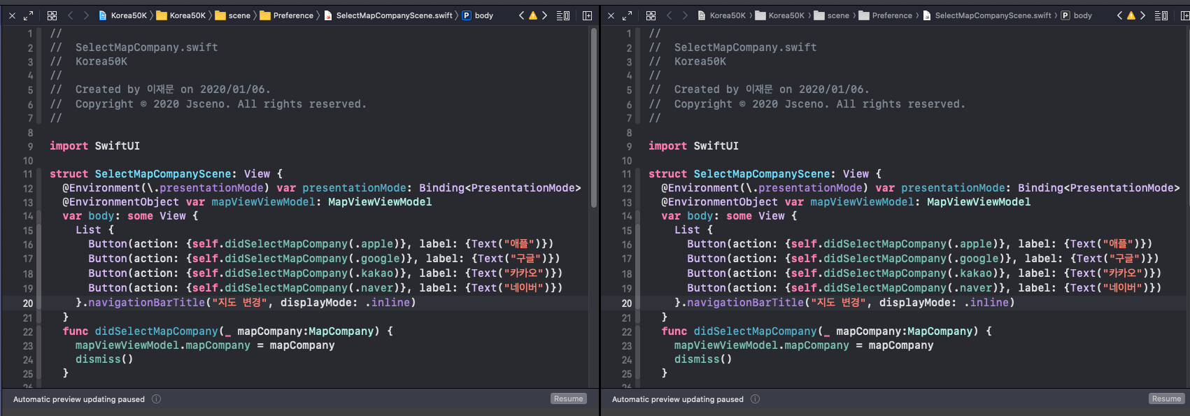 | [iOS] SwiftUI에서 present modally 하는 법 (0) | 2020.01.09 |