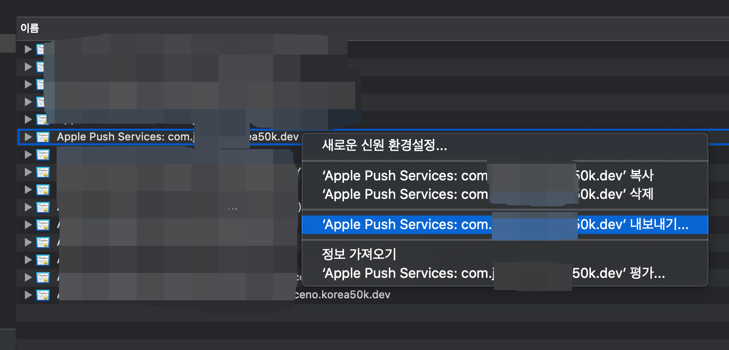 - 애플 개발자 페이지에서 Push Notifications 인증서를 등록해준다.