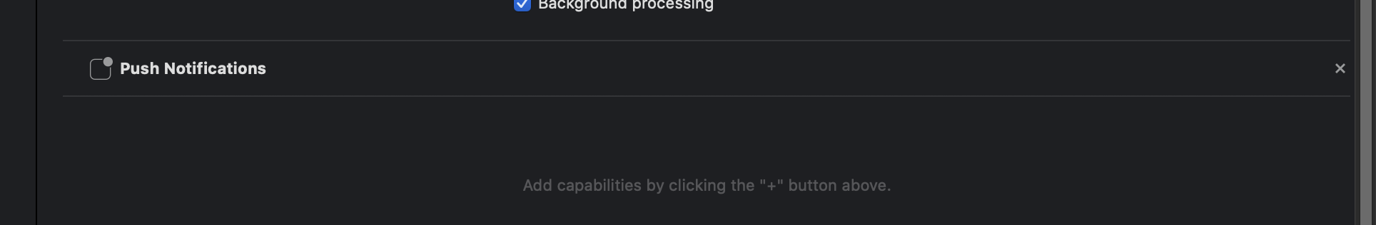 - Xcode 프로젝트 설정의 Capabilities 탭에서, Push Notifications를 추가해준다.