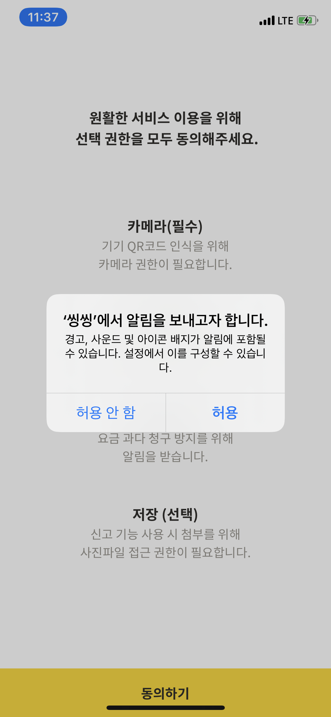 당근마켓은 씽씽같이 동의하기 화면은 따로 없었다.