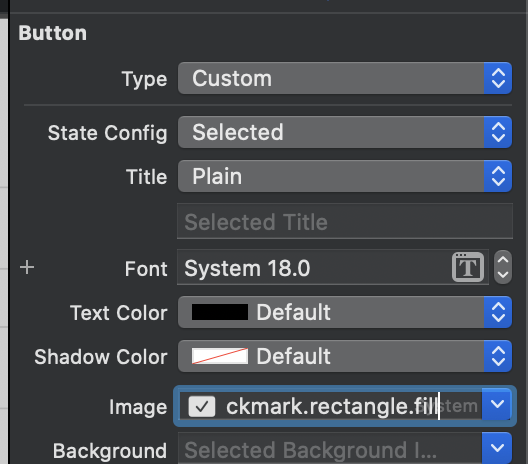 이렇게 버튼을 만들어 주고, 버튼의 Image로 iOS 내장인 checkmark를 사용한다.