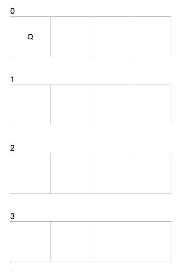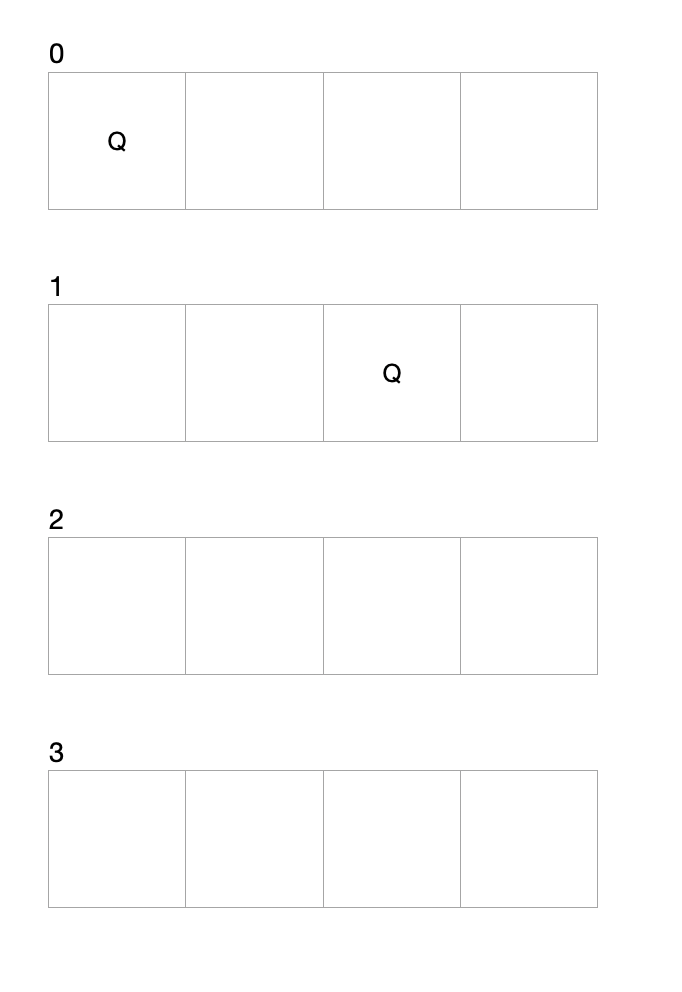 이렇게 놓고 나니 2번째 줄에는 더이상 둘곳이 없다. 이럴 경우 backtracking!