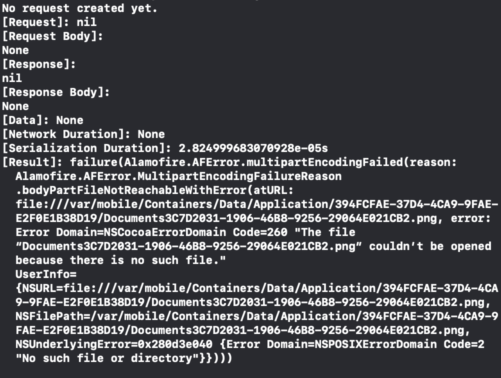 Alamofire을 이용해서 이미지를 서버에 업로드 하는데, 다음과 같은 경고가 뜨면서 이미지 업로드가 안되는 문제가 발생했다.