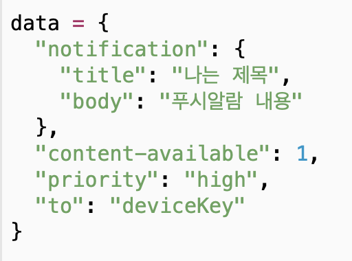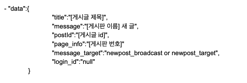 문서를 확인하니, 서버에서 이런 형식으로 push를 보내고 있으니 알아서 까서 앱에서 보여주라는 문서가 있었다.