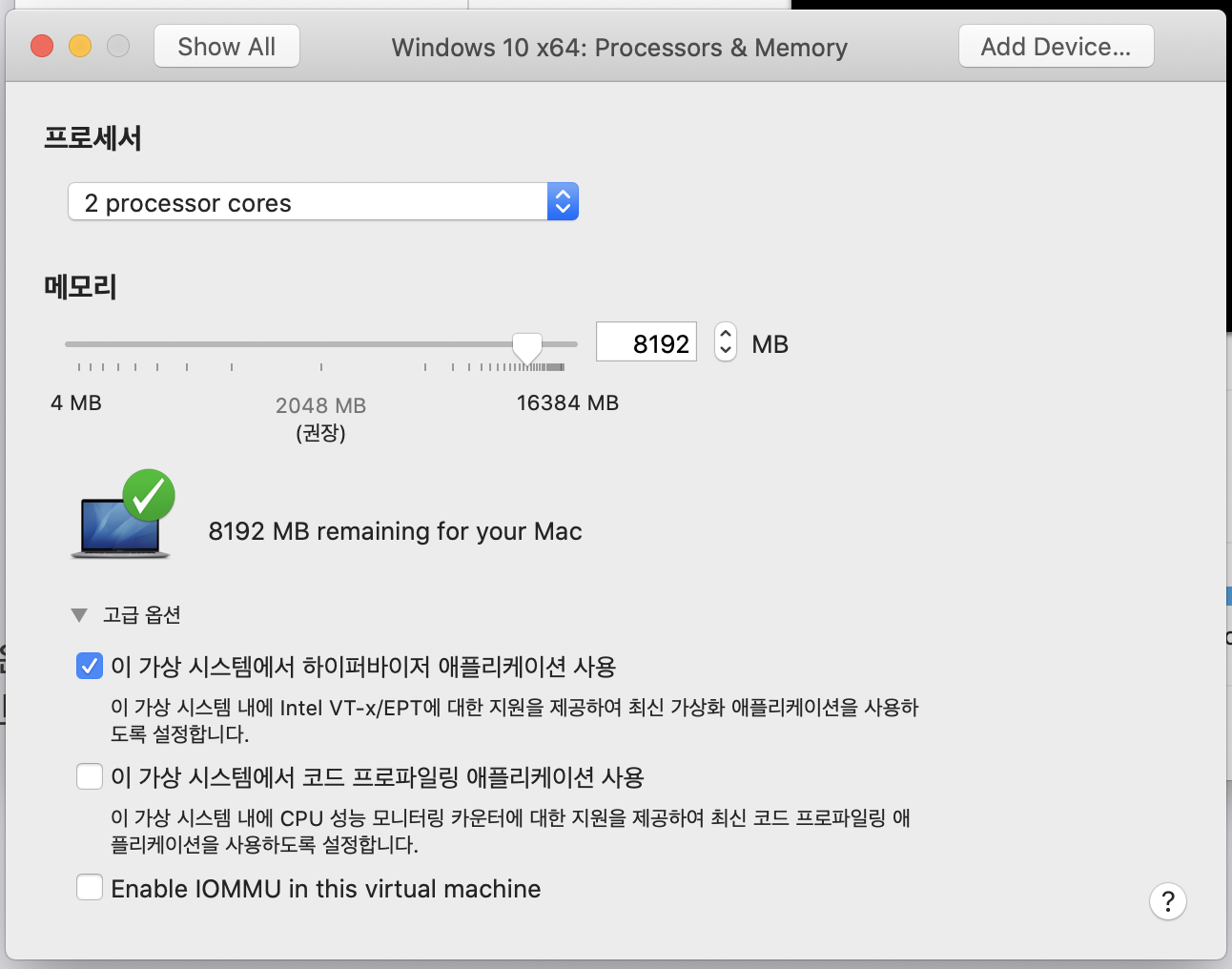 Mac에서 VMWare를 띄우고 그 안에서 또 VMWare를 켜려고 하니까 다음과 같은 문제가 발생했다.