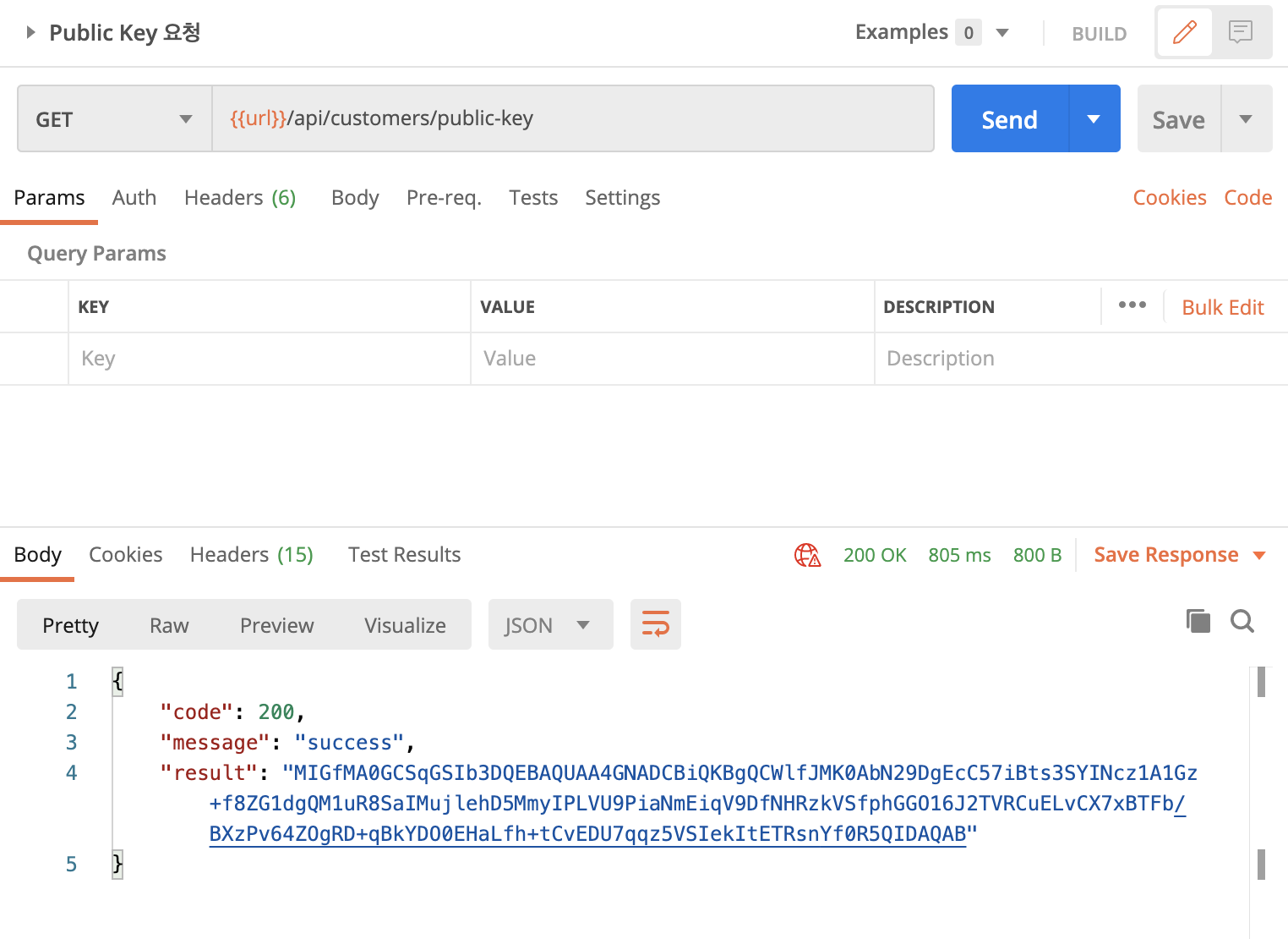이렇게 서버개발자가 만들어준 public-key API를 호출해서 publicKey를 받고,
