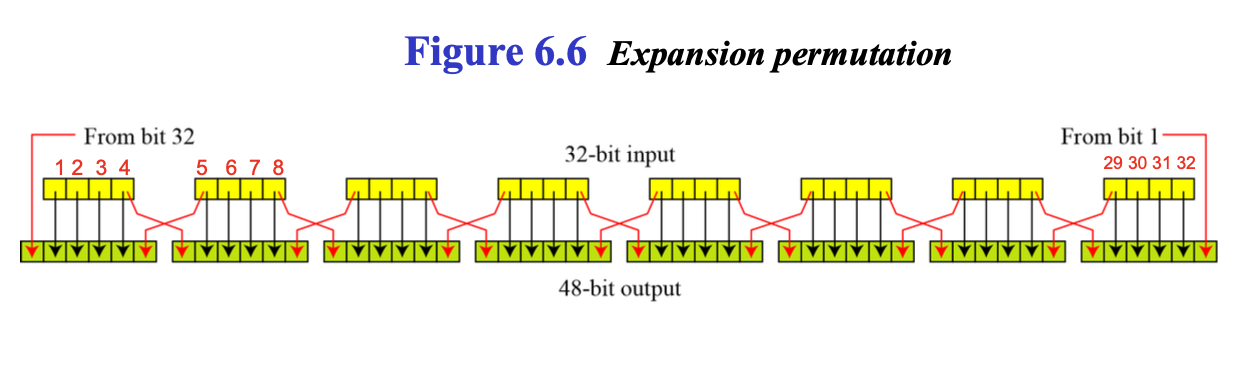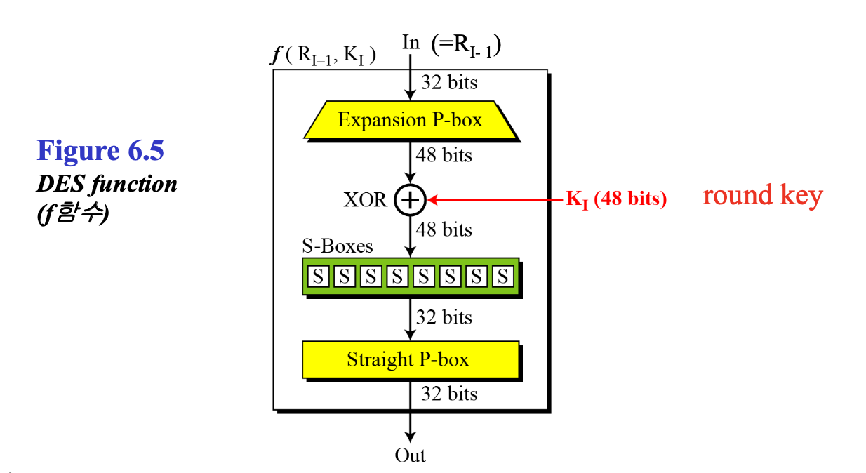 F함수 내부를 자세히 보면, Expansion P-box, XOR, S-Boxes, Straight P-box 이렇게 4개의 과정으로 구성되어 있다.