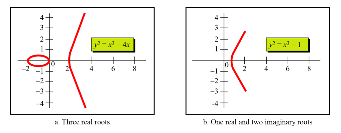 예를 들어, E = {(x,y) | y^2 = x^3 - 4x} 라는 타원 곡선 위의 모든 점의 집합을 정의해보자.
