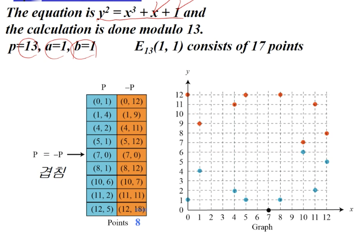 (4,2)의 덧셈역은, mod p상에서 연산이 이루어지기 때문에 (4,11)이다. 그래서 처음 그래프와는 위치가 달라질 수 있다.