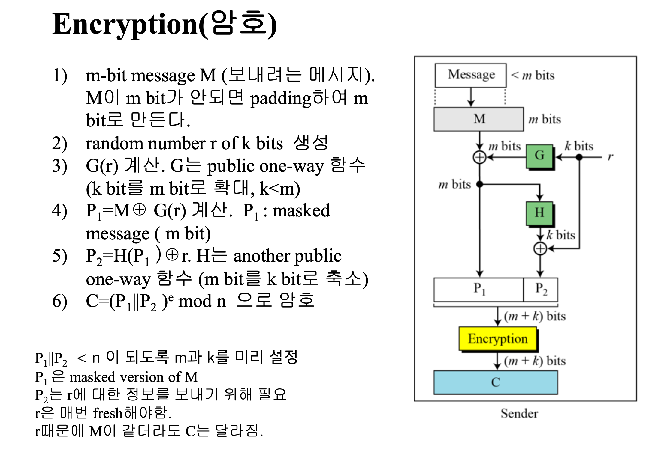 이에 랜덤성을 추가해서 P가 같아도 C가 다를 수 있게 해주는것이 OAEP이다.