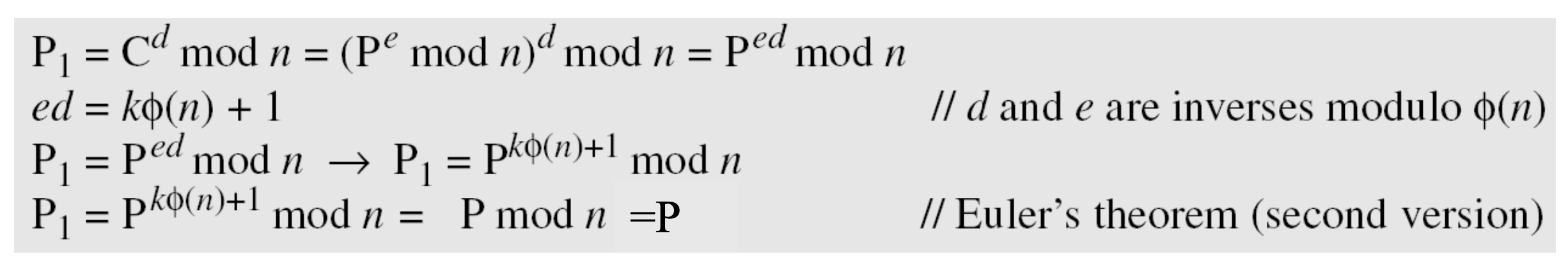 n = p*q 이니까 n을 가지고 p와 q를 구한다. 근데 이게 쉽지 않다... n이 1024비트 이상이기 때문에 소인수 분해를 하는 과정이 굉장히 오래걸린다. 따라서 n을 크게 고르면 안전하다.