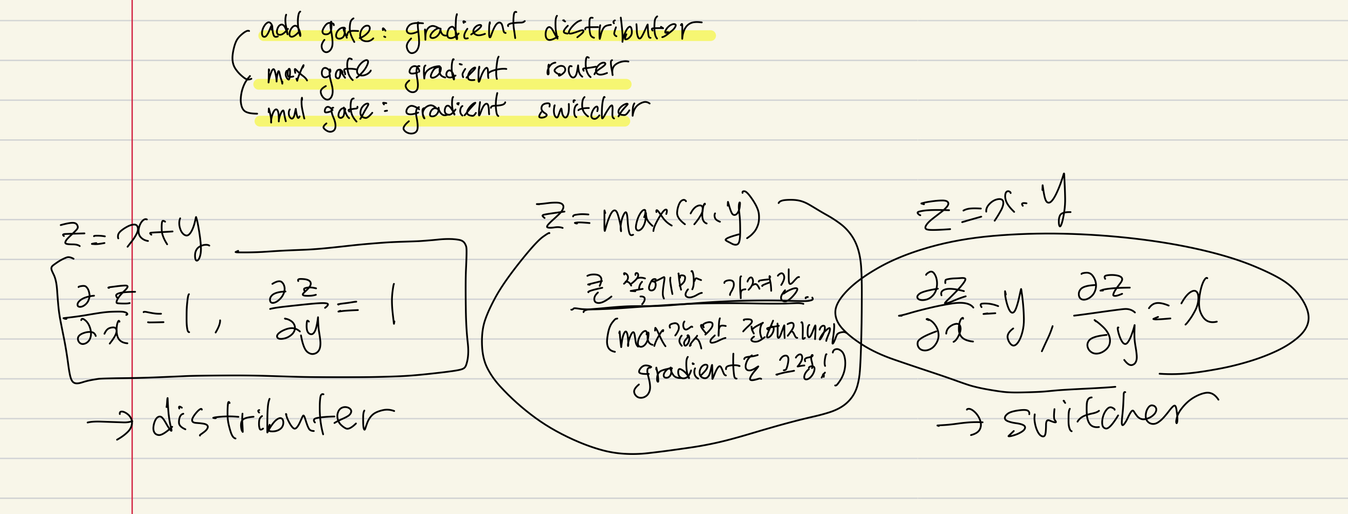 backpropagation에서 하는 일은, 저 미분값들을 노드 하나당 하나씩 구해서 곱해주고, 더해주고 하는 일이다.