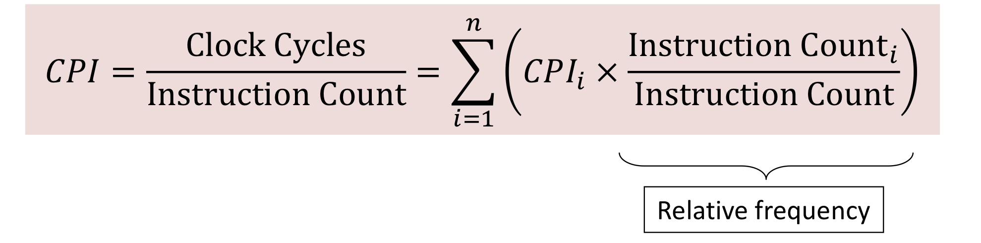 - instruction마다 CPI가 다르다. add는 3번인데 assignment는 2번일 수 있다.