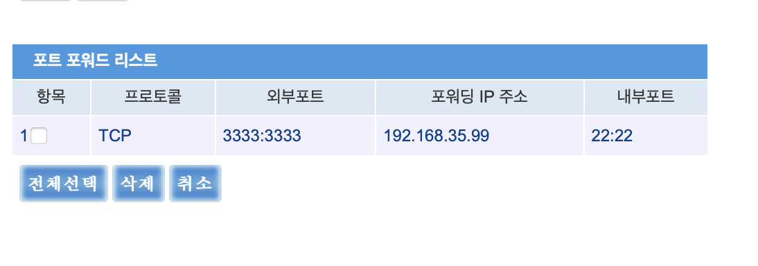 외부포트는 3333을, 내부 포트는 22를 썼다.