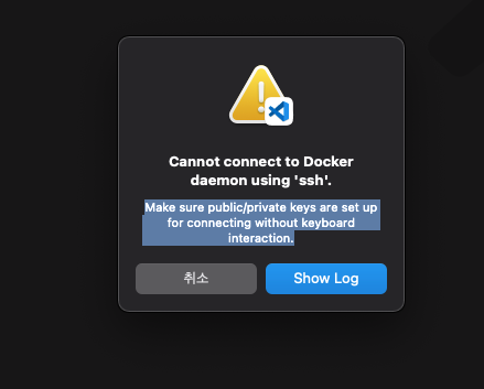 [Docker] VSCode에서 cannot connect to docker daemon using 'ssh' 문제 해결하기
