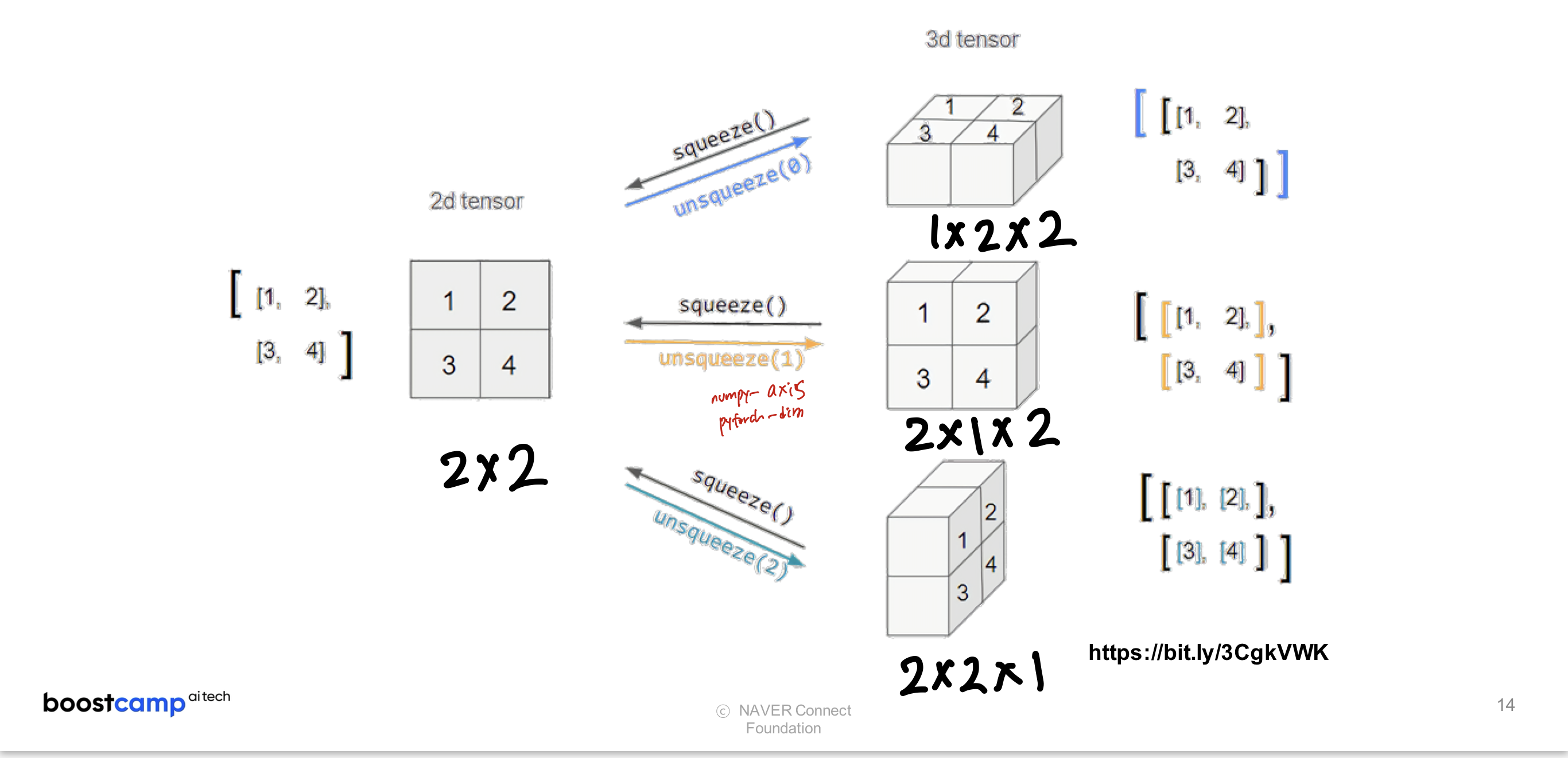 unsqueeze : 차원의 개수가 1인 차원을 추가
