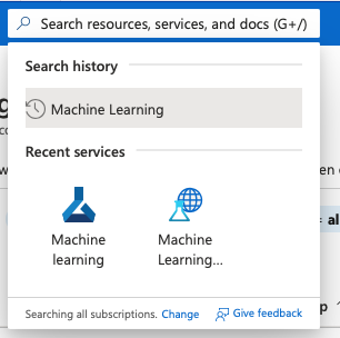 Machine Learning으로 검색해서 machine learning workspace를 만들어 준다.