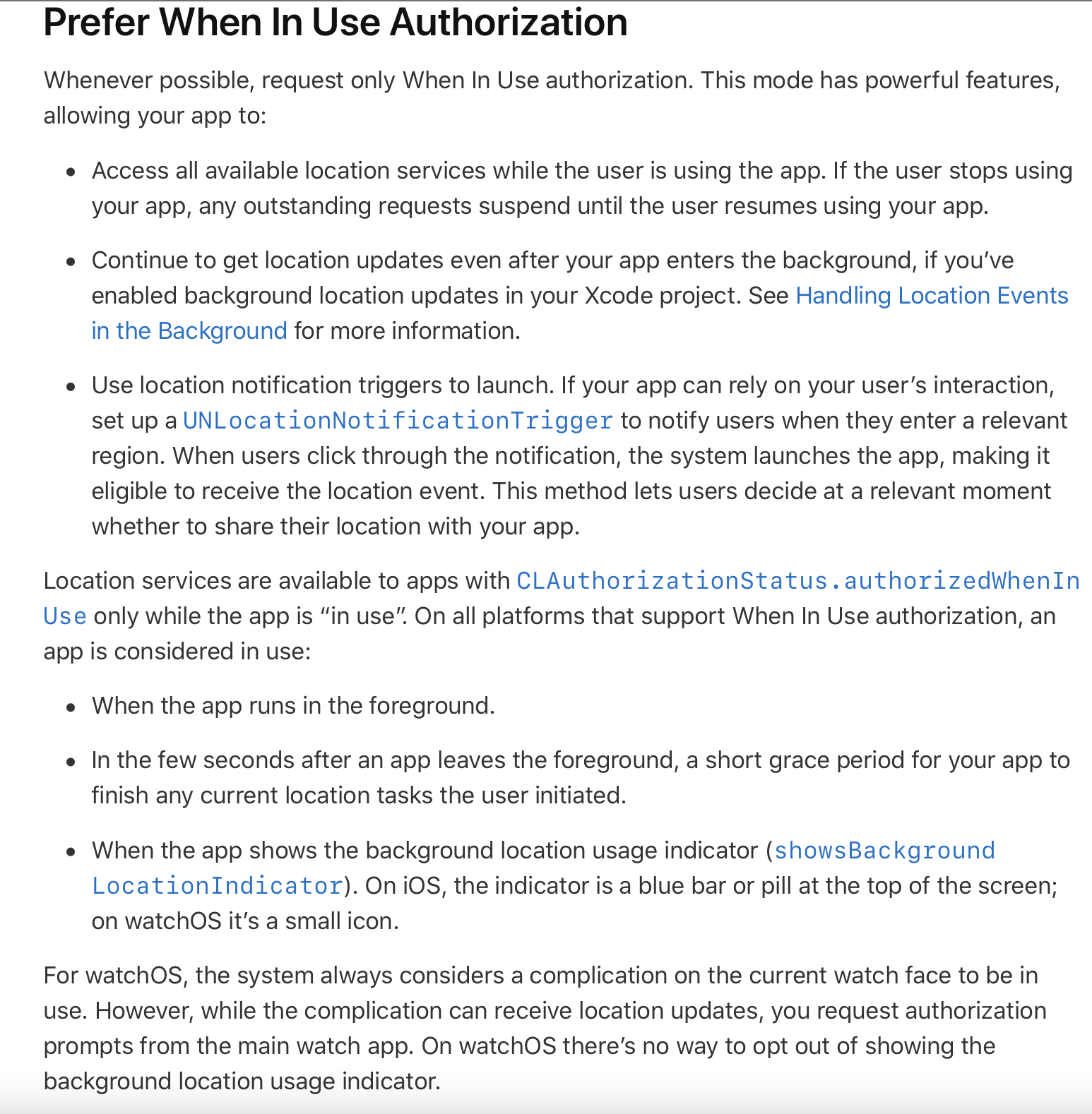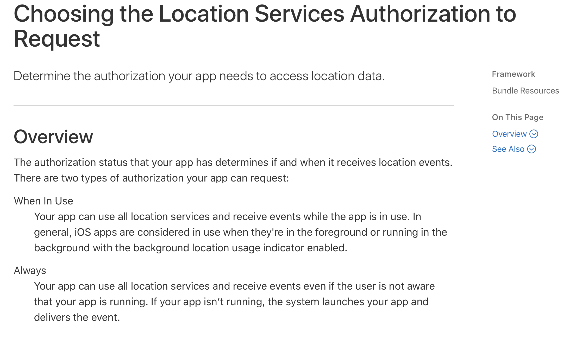 - Your app records numerous locations throughout the day, such as for a diary app. The user may prefer to allow Always authorization so your app can record locations even when it’s not in use, and without prompting the user.