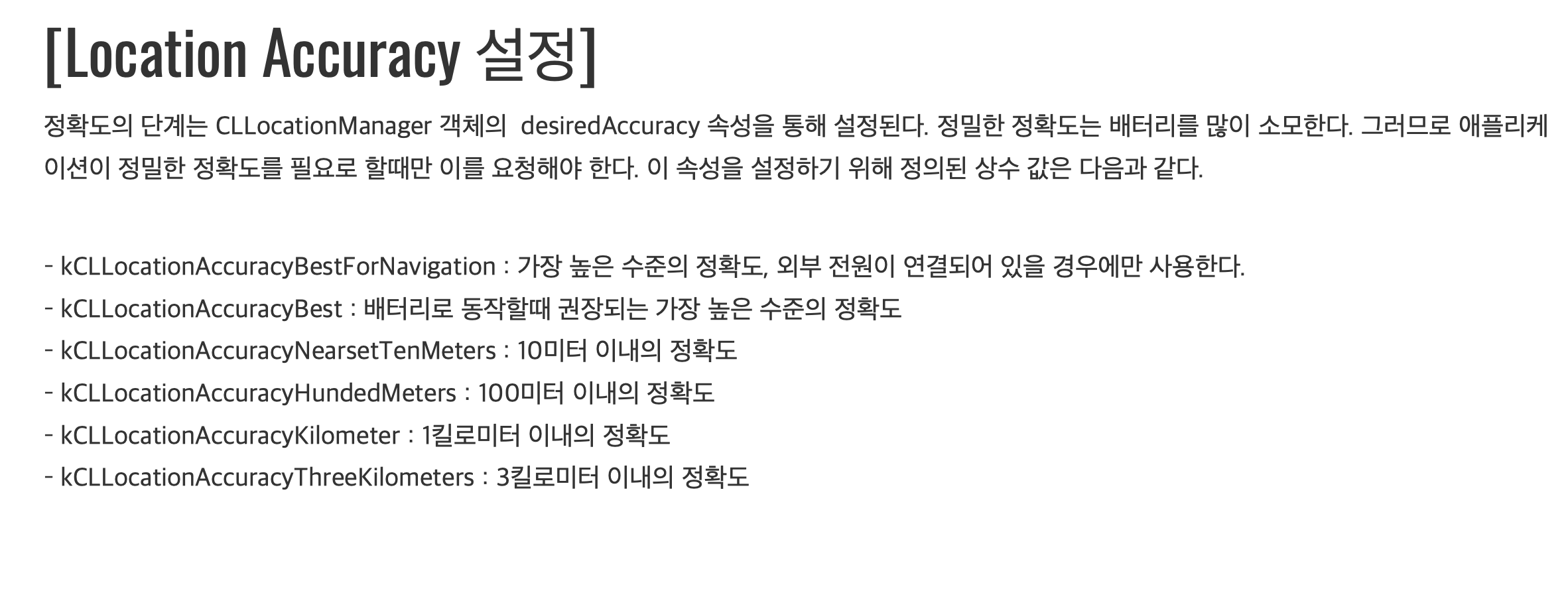 * 기본적으로 앱을 사용중일때만 위치 정보를 받아오는 옵션입니다.