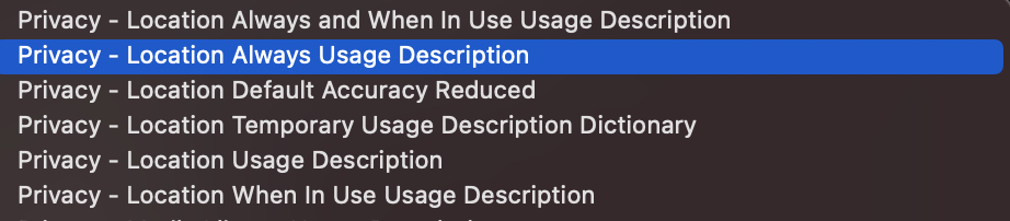 NamePrivacy - Location Always and When In Use Usage DescriptionType