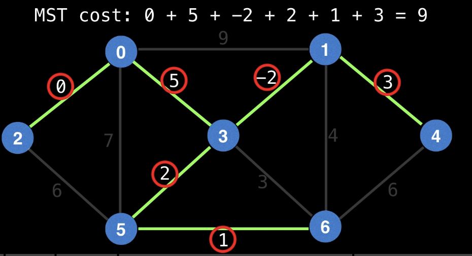 output: cycle 없는 edge cost가 최소인 spanning tree