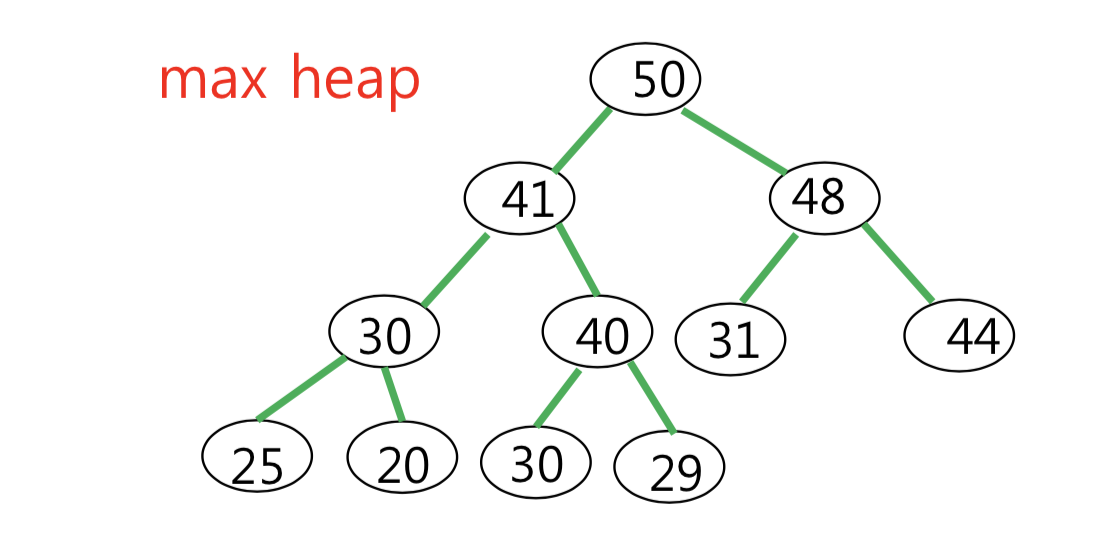 얘는 max heap의 조건을 만족한다. complete binary tree의 형태도 만족하니까!!