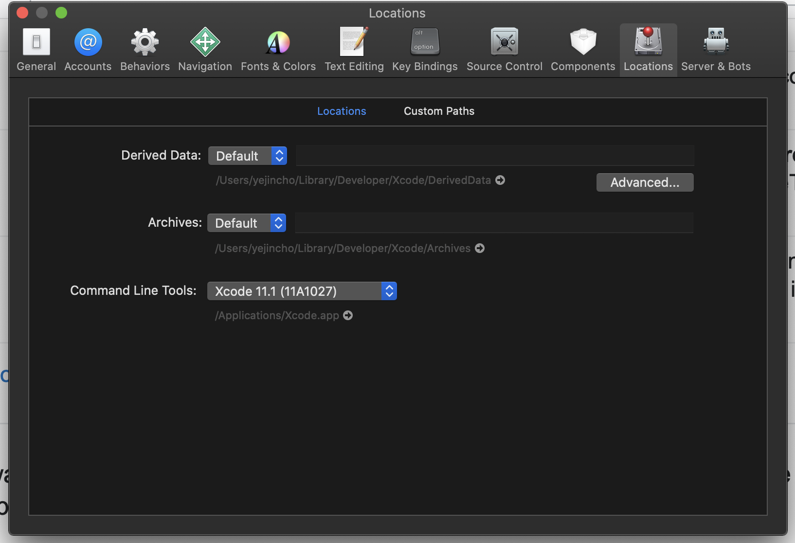 command line tool을 xcode 11.1을 골라줬다!