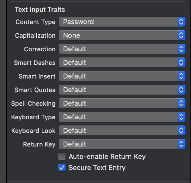 Content type은 Password, Secure Text Entry에 체크해주면 된다.