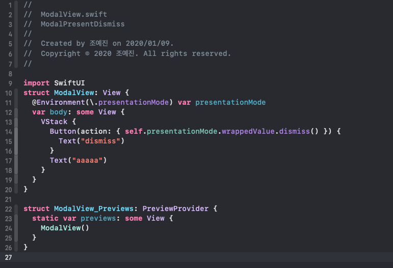 [iOS] SwiftUI에서 present modally 하는 법