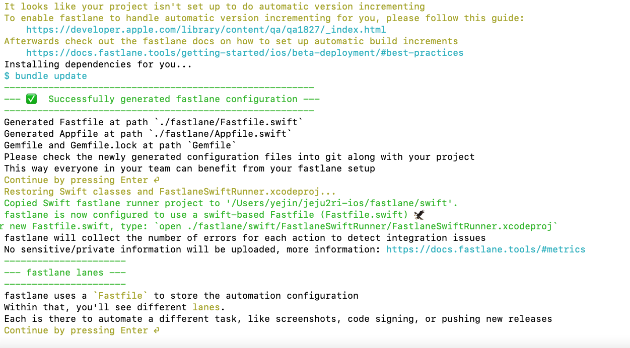 fastlane init하고 테플 업데이트를 골라줫다. 알아서 스크립트가 세팅이 되었다.