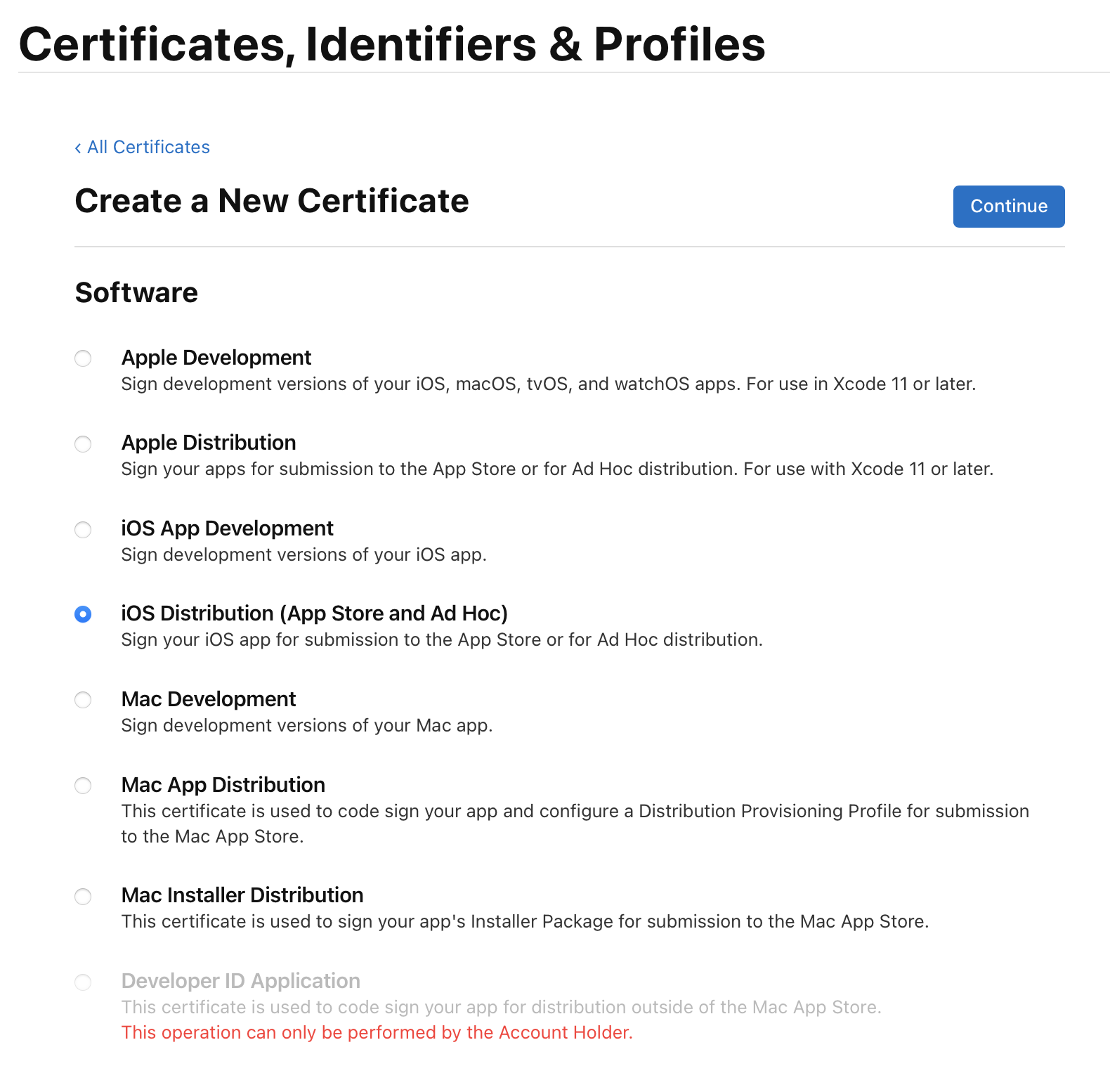 iOS Distribution 을 위한 CSR이 없어서 나는 에러였다.