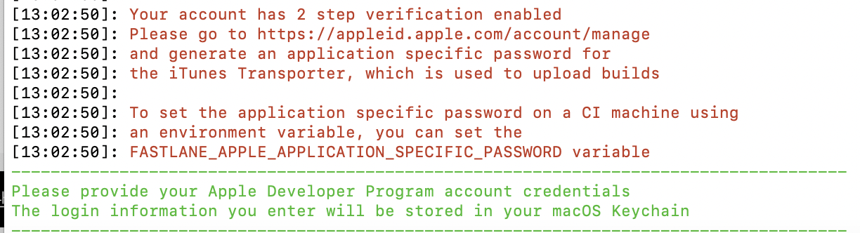 다음과 같은 에러가 나서, https://appleid.apple.com/account/manage 에서 앱 암호 > 암호 생성을 해주었다.