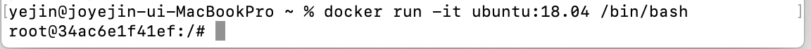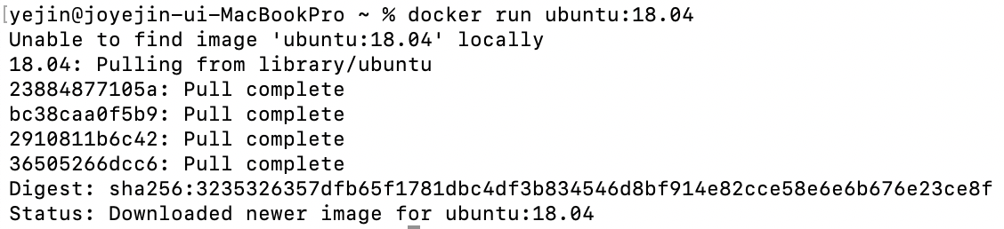 ubuntu 이미지가 로컬에 있으면 가져오고, 없으면 새로 다운로드 받는다.