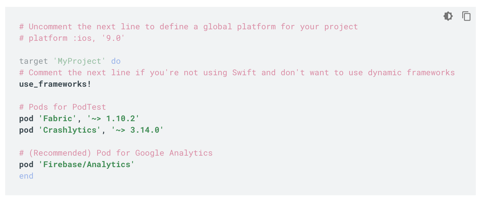 나는 이미 Crashlytics와 Analytics는 있어서 'Fabric'만 추가해 주었다.