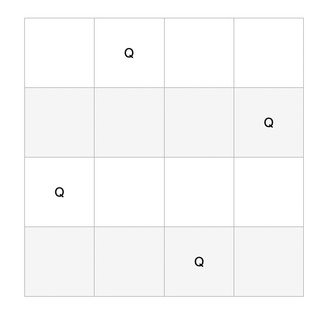 n-queens problem은 크기가 N인 체스판에, 여왕말 N개를 서로를 공격할 수 없게 두는 것이다.