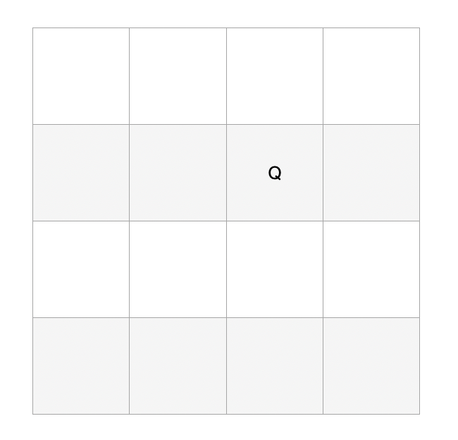 queen은 좌우상하 대각선4방향 전부 다 되기 때문...!!! 그래서 생각보다 놓을 수 있는 곳이 한정적이다.