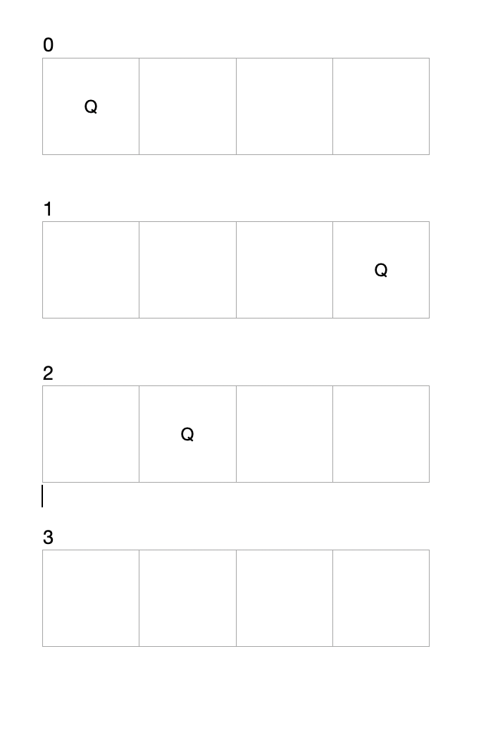 이렇게 놓고 나니 2번째 줄에는 더이상 둘곳이 없다. 이럴 경우 backtracking!