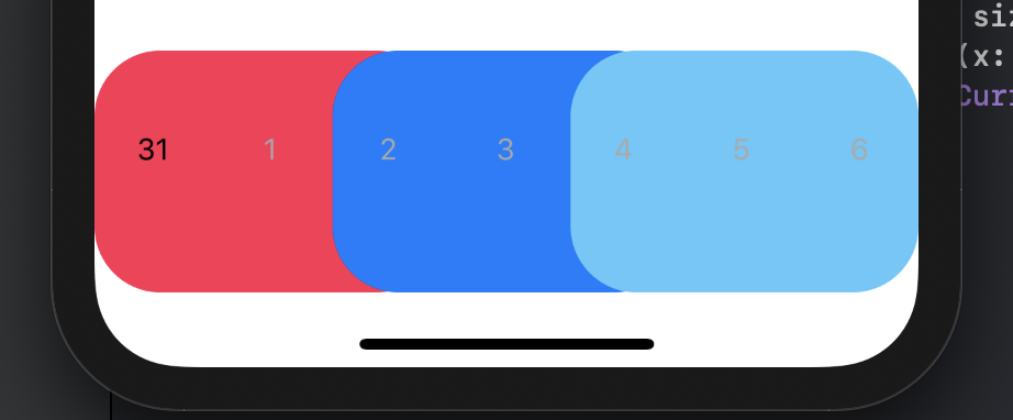 이런식으로 stackView에 넣어서 distribution을 fill equally로 하고, spacing을 음수로 줘서 해결할 수 있어서 간단할거라고 생각했는데
