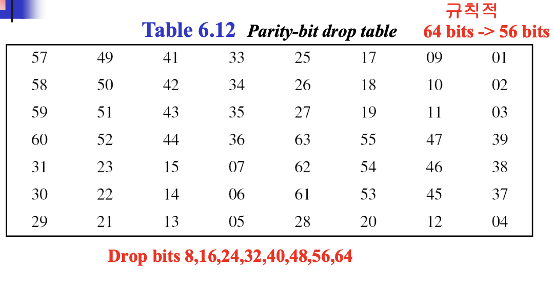 cipher key에 대해서 parity bit를 더해서 64비트를 만들어주고, Parity drop을 하고, circular shift left하고, Compression P-box를 해서 키를 완성한다.